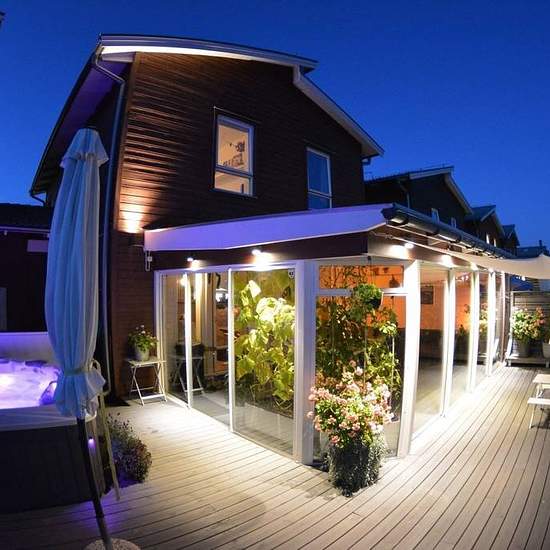 Modern villa 121 kvm uthyres nära Stockholm – fullt möblerad & familjevänlig 36 min från Stockholm C, 2 min till busshållplats, 5 min till pendeltåg (Bro). Byggt 2014, energiklass B. Öppen planlösning mellan exklusivt kök och vardagsrum, 2 badrum, tvättstuga med groventré, vattenburen golvvärme på entréplan. Furnishings & Living: 79-tums smart TV, två soffgrupper (vardagsrum + inglasat uterum), två matbord (inne + patio). Master bedroom med lyxig dubbelsäng (>16,000 kr). Två andra sovrum med 3 sängar, inkl. arbetsplats. Separat arbetsrum m...