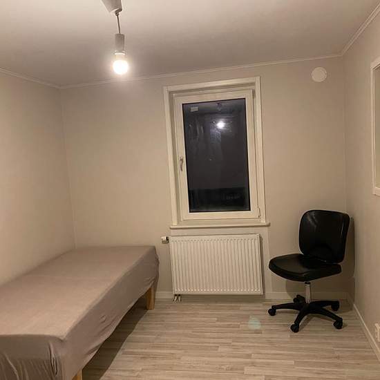 Hus med 4 sovrum ( 2 rum nedre- och 2 rum på andra våning), 1 rymligt vårdagsrum, kök; tvättstuga i källare. Badrum med dusch +WC, extra WC i källaren. Huset uppvärms med Luft-vatten värmepump. Finns fiber internet anslutning. Gott om parkeringsplats. Park med lekplas bredvid. Skog med promenadstigar bakom huset. 2 minuter från Säffle Centrum, där finns allt. Kallhyra. Du själv står för el, vatten och sophämtningskostnader. Serviceavgift för hyresgäst: 470