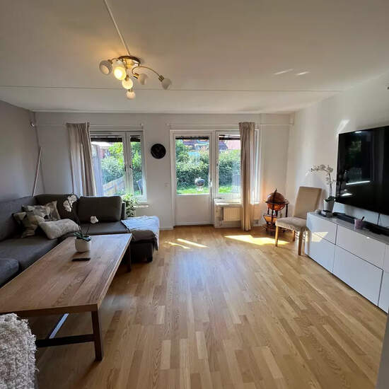 Beskrivning Möblerat gavelradhus (135kvm) med tre sovrum, (möjlighet till ett till), vardagsrum, stort allrum, två badrum, kök samt balkong och stor uteplats med tomt. Parkettgolv och nyligen renoverat kök och båda badrummen. Alla bekvämligheter såsom fullutrustat kök, badkar, tvättmaskin m.m. 15 min med pendeln till södra station och buss som går direkt utanför huset till bland annat Huddinge sjukhus. Nära skog och naturområden med fina vandringsleder. Ett stenkast från sjön Drevviken. Mycket barnvänligt område med lekplats och stor fotboll...
