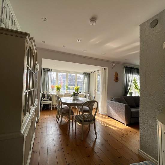 Välkomna till vårt mysiga hem! Vi söker en familj eller ett företag som skulle vara intresserade utav att hyra vårt hus. Huset är en fristående villa i ett kvarter norr om Stockholm, ca 5 minuter till pendeltåget och matvaruaffär, kiosk och paket in/utlämning samt diverse små restauranger. Pendeltåget tar ca 12-15 minuter in till Stockholm city samt är i direkt förbindelse med Arlanda. Hela huset har genomgått helrenovering vilket inkluderar kök, teknik och badrum. Vi har fyllt trädgården med bl.a äppelträd som ger rikligt med frukt, kru...