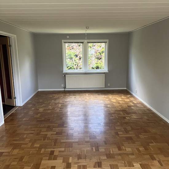 Trevlig familjevilla med lekplats runt knuten och promenadavstånd till skolor och förskolor. Huset har 4 sovrum, litet allrum och nyrenoverad toa-dusch på övre plan. På bottenplan finns vardagsrum, badrum med tvättmaskin och torktumlare, samt kök med stor matplats. Trädgårdstomt på ca 1000kvm som hyresgästen ansvarar för att sköta Garage finns och ingår i hyran. Större delen av huset tapetserades om och nytt energieffektivt luft-vatten system installerades våren 2025. Hyran är en kallhyra och hyresgästen står själv för elabonnemang, vat...