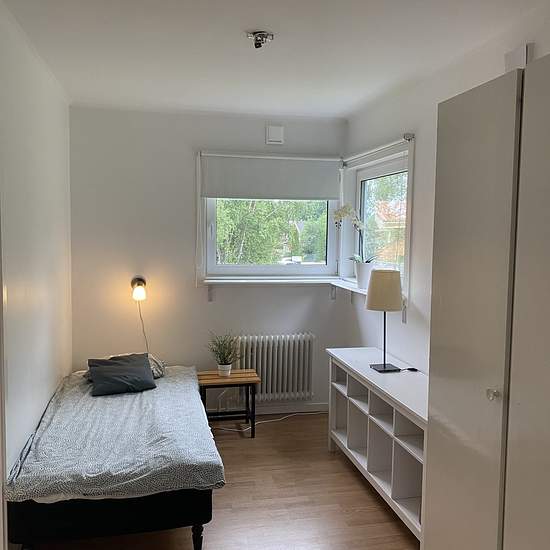 Trevlig och fin lägenhet 4 rok 98 kvm, med 3 separata sovrum, vardagsrum, kök, hall, badrum med dusch och WC. Stor balkong men även tillgång till trädgården. Parkering och fiber med gratis Wi-Fi ingår. Uthyres främst till företag kortare eller längre period. Serviceavgift för hyresgäst: 1237