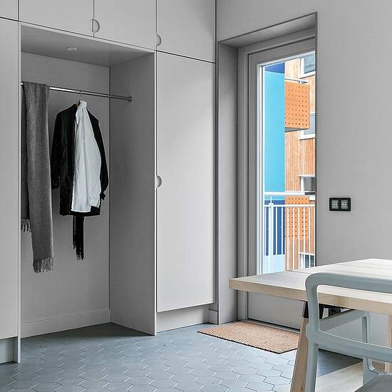110 spännande kvm fyllt med design och vackra detaljer, signerat Thomas Sandell, en av Sveriges främsta arkitekter. Huset är en av finalisterna i kategorin 'bostäder' i World Architecture Festival 2019. Ett modernt boende i en modern stadsdel! Verkligen något extra för er som tycker om design och söker en unik bostad. Entréhall med både garderober och plats för avhängning av ytterkläder. Vackert grått klinkergolv i hexagon-mönster. Självklart finns här vattenburen golvvärme! I anslutning till entrén finns en balkong. Det hexagon-mönstrade ...