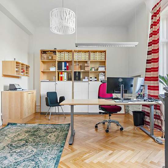 Pampig våning med utsikt över Vättern. KATEGORI: Kontor STORLEK: 230 m² En trappa upp i huset finns nu möjligheten att hyra en kontorsvåning med allt man kan önska. Nedan följer en lista med exempel på saker som gör denna våning till något alldeles extra: - Dekorativa målningar i flera utav rummen. - Vackra parkettgolv, stuckaturer, extra breda golvlister och takrosetter i flera rum. - Nyrenoverat kök med järnspis, moderna vitvaror och granitbänkskivor. - Helkaklat badrum med dusch och badkar. Parkering kan ske på gatan utanför huset. F...