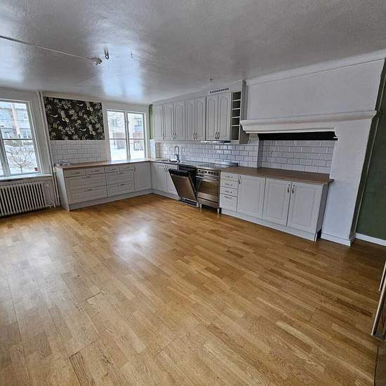 Här är verkligen en unik lägenhet som nu finns tillgänglig för uthyrning. De nya trägolven och tapeterna ger en fräsch bas, medan det nya duschrummet med kombinerad tvättmaskin och torktumlare tillgodoser moderna krav på bekvämlighet. Att ha hela tre fungerande kakelugnar är unikt och fungerar både som en effektiv värmekälla och en betydande stämningshöjare. Med nästan 200 kvadratmeter erbjuds rymliga sällskapsytor som är idealiska för både socialt umgänge och en luftig vardag. Med utsikt över både Nyköpings hus och Nyköpingsån kommer n...