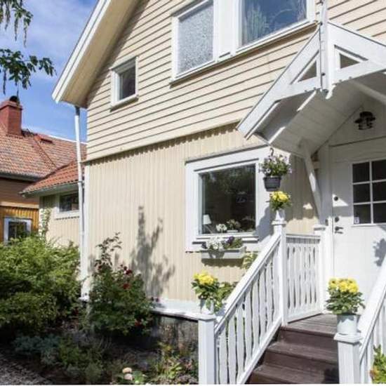 Otroligt charmig villa mitt i Gamla Råsunda. 9 rum och kök totalt 5-6 sovrum, två badrum, bastu, tvättstuga, inglasad balkong och uteplats samt garagebyggnad. Ytskikt renoverade i maj 2020. (Kök och rum med brun trävägg är numera vitt) Dep 2 månader.