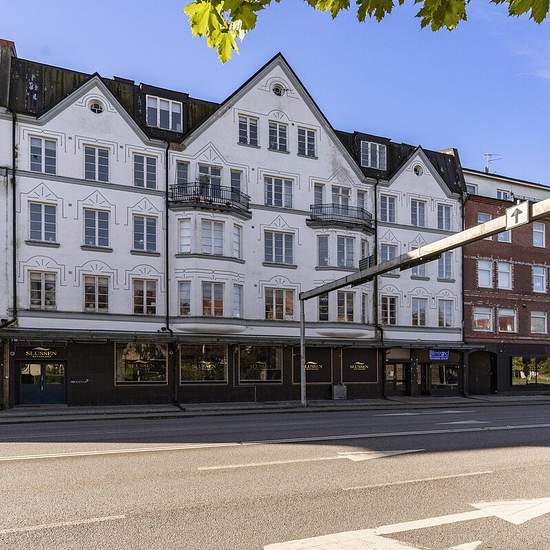 Centralt belägen våning med centrumhandel, skola och kommunikation i direkt närhet. Lägenheten är rymlig, högt i tak och utrustad med badrum (badkar, wc, tvättmaskin och torktumlare) samt ytterligare en toalett. Hyran avser varmhyra och inkluderar vatten och avlopp. Hushållsel tillkommer. Serviceavgift för hyresgäst: 1039