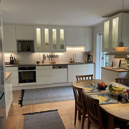 Villa på 154 kvm uthyres i vackra och lummiga Havsbaden. Några minuters promenad till stranden samt Kronoskogen samtidigt som Ängelholm centrum är endast en 5-10 minuters cykeltur bort. Uthyres fullt möblerad och med all tänkbar utrustning inkluderad. 6 rum fördelade på tre sovrum, vardagsrum både uppe och nede samt matrum och kök. Badrum med dusch samt extra separat toalett. Stor trädgård samt carport och förråd med god plats inklusive flera cyklar. Gäststuga på tomten ingår också, vilken passar bra för upp till två vuxna och två barn un...