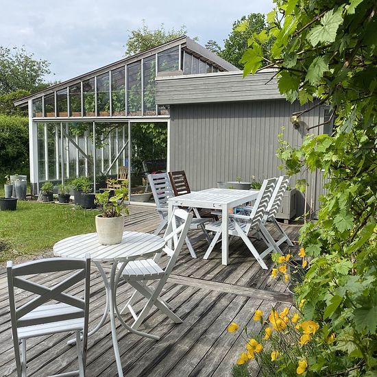 Enplansvilla uthyres under hösten Vi hyr ut vårt trivsamma hus under hösten då vi kommer att bo i Spanien under en period. Vi söker ansvarsfulla hyresgäster som vill bo i ett lugnt och trevligt område och ta hand om vårt hem under tiden vi är borta. Planlösning Huset är en enplansvilla i vitt mexitegel med en rymlig och genomtänkt planlösning. Köket har en stor köksö och ligger i öppen planlösning mot en generös matsplats. Härifrån kliver man rakt ut på altanen där gröna vindruvor växer, och vidare in i det charmiga orangeriet/stora växthus...