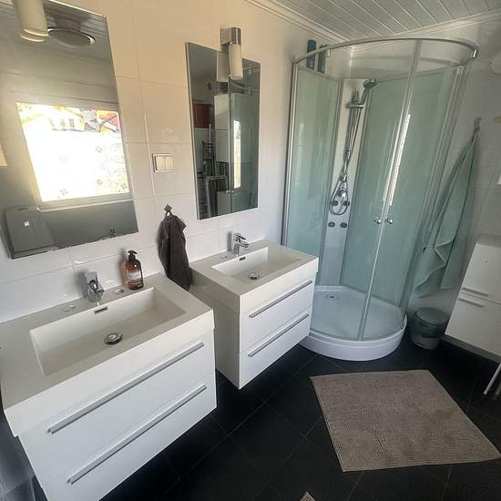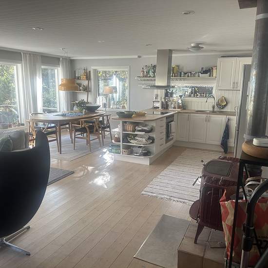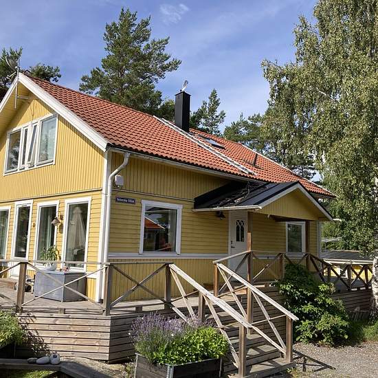 Tvåplansvilla på Djurö Kyrkväg uthyres för längre tid. Gård med flera hus. Villan som skall hyras ut är fristående ca:140 kvm. Öppen planlösning vardagsrum/kök. Sjöglimt åt två håll, Kanholmsfjärden/Kyrkviken. Kök med varmluftsugn, takfläkt, kyl, frys, micro, diskmaskin,braskamin. Två badrum med dusch/toalett. Tvättmaskin/torktumlare. Stort utedäck på två sidor av huset. Morgonsol mot Kanholmsfjärden, kvällssol mot Kyrkviken. Liten balkong på övervåningen. Nära busshållplats,700m. Direktbuss till Slussen ca 40 min. Promenadavstånd,(5-10min) ...
