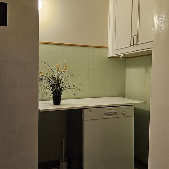 Ett tevligt hus, med bra planlösning, i ett lungt område. Stor parkering för fler bilar på gården. Närhet till lokaltrafik, skola odyl, rekreationsområde, badhus och restauranger och handel. Huset har 5 sovrum, separat duschrum, badrum och wc samt vardagsrum. Kök har basutrustning för 8 personer. Entrén har generös yta för ytterkläder och skor. Altan och uterum, med enklare sittmöbel, finns på gårdssidan med dörr från hallen. Garaget är ombyggt till tvättstuga med generös yta för grovtvätt, tvätt och tork, samt återvinningskärl. Serviceavgif...