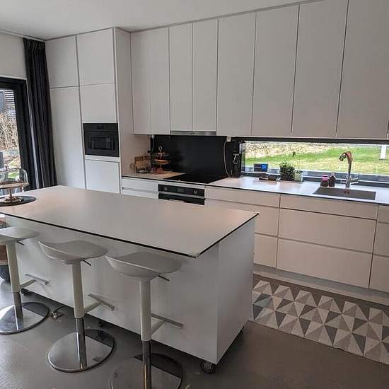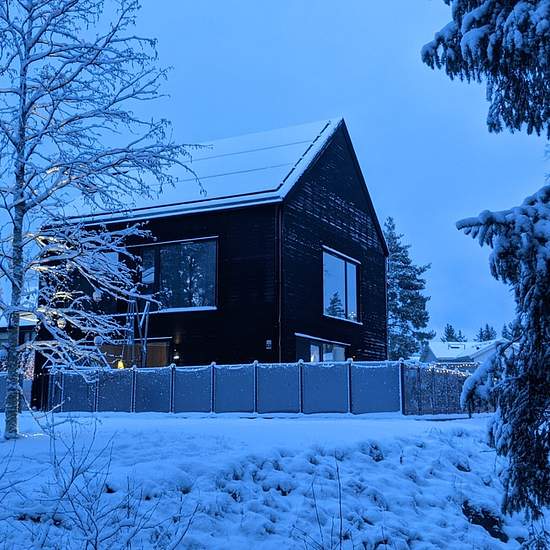 Modern villa i två plan. Planlösning entréplan: rymlig hall med inbyggda spegelgarderober, toalett med dusch, tvättmaskin och torktumlare, öppet kök med köksö samt vardagsrum med stora fönster och mycket ljusinsläpp från två olika håll, kontor/gästrum. Övre plan: 4 sovrum med stora fönster, ett av sovrummen har inbyggd garderobsvägg, badrum med badkar/dusch och toalett. Billig driftkostnad tackvare solceller på taket. Stor altan omger huset. Gräsmatta och stenlagd uppfart med carport och förrådsdel. Cykelförvaring bakom carporten. Laddbox f...
