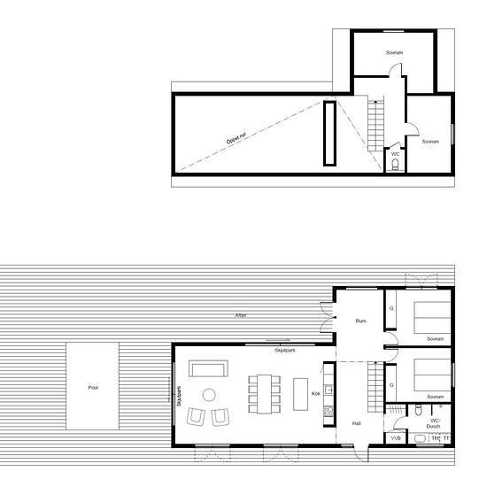 Detta exklusiva nybyggda hus kombinerar modern arkitektur med högsta möjliga standard. Med 6 rum, varav 4 sovrum, erbjuder det en genomtänkt planlösning för både permanent- och fritidsboende. Entréplanet rymmer ett öppet kök och vardagsrum med rikligt ljusinsläpp, två sovrum och ett badrum. På övre plan finns ytterligare två sovrum och en toalett. Stora skjutdörrar i flera väderstreck suddar ut gränsen mellan inne och ute, där det rymliga trädäcket med pool skapar en avkopplande miljö med sol från morgon till kväll. Havet ligger ca 200 meter...