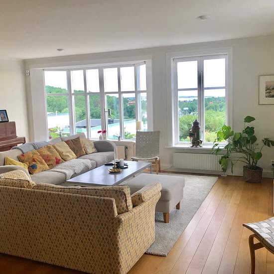 Villa i Västra Göteborg, Långedrag med unikt läge, både insynsskyddat och fantastisk utsikt över havet till Vinga och Göteborgs hamn, uthyres from mitten av feb 2026. Lugnt fint område på återvändsgata med obefintlig trafik. 10 minuters cykelavstånd till bad och närhet till fina motions-områden. Villan har två stora altaner, en i sydväst och en i norr plus en grill-plats. Huset är på 185 kvm och har en trevlig trädgård i olika nivåer med fruktträd. På entréplan finns plats för umgänge, stort härligt vardagsrum med öppen spis, matsal, kök och...
