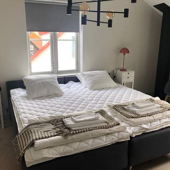 Villan erbjuder 6 rum fördelade på två våningsplan. På nedervåningen möts du av en ljus och öppen planlösning som integrerar kök och vardagsrum. På samma våningsplan finns ett badrum med dusch samt en tvättstuga. På övervåningen finns fyra sovrum med totalt sex bäddar. Det största sovrummet har en dubbelsäng samt en klädkammare vilket skapar gott om förvaringsutrymme. Ett sovrum har två enkelsängar. De återstående två sovrummen har varsin enkelsäng. Här finns också ett badrum med dusch. Bostaden hyrs ut möblerad. Internet och basutbud TV in...