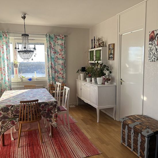 Jag hyr ut min möblerade etagelägenhet (6 RoK) under sommaren. Jag har tänkt mig 2 månader, ca 16/6-15/8, men den exakta perioden går att diskutera. Lägenheten ligger högst upp (plan 9 och 10) i ett höghus med fri sikt över närområdet, sjö, skog samt mot Stockholms stad. Det finns 2st inglasade balkonger. 5 sängplatser = en dubbelsäng + 3 enkelsängar. Trevliga grannar. Väldigt bra kommunikationer, och nära till sjö och skog. 2 badbryggor och en badstrand inom promenadavstånd. Med kollektivtrafiken kommer man lätt in till city och de stora ev...