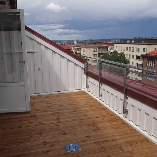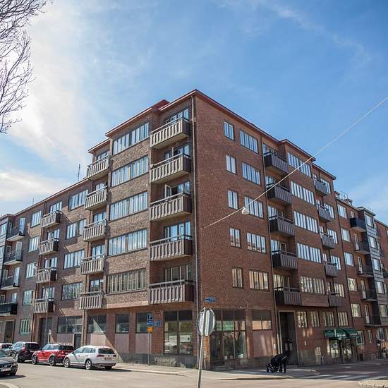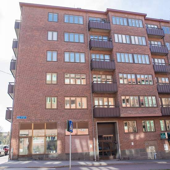 Högst upp i huset ligger denna hemtrevliga etagelägenhet om sex rum och kök fördelat på 194 kvadratmeter. Lägenheten ligger på gaveln vilket ger bostaden ett fint ljusinsläpp. På nedre plan finns kök, vardagsrum, samt gästtoalett. Tre sovrum, ett badrum och mindre tvättstuga hittar du på övre plan. Fräscht kök och badrum, ekparkett i alla rum och vita väggar. Köket har vita köksluckor, bänkskivor i mörk sten, induktionshäll, inbyggnadsugn samt diskmaskin. Badrummet är vitkaklat med grå klinker på golvet, dusch och dubbelt tvättställ från Ve...