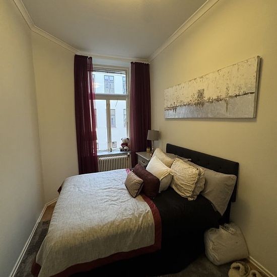 6 ROK/186 kvm på Vasagatan Tillträde 2026-06-01 Tidsbestämt hyresavtal t.o.m. 2029-12-31 3 mån uppsägningstid Hyra 25 029 kr Värme, varmvatten samt Tv basutbud via Tele2 ingår Hyresgäst tecknar eget avtal för el samt bredband via Göteborg Energi och Tele2 respektive Vån 3 (finns hiss) Balkong Badrum med dusch samt gästtoalett Tvättstuga med tvättmaskin och torktumlare Stora rymliga rum takhöjd på över 3 m 5 sovrum Förråd i källaren Serviceavgift för hyresgäst: 1238