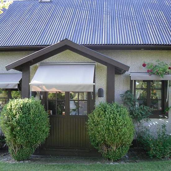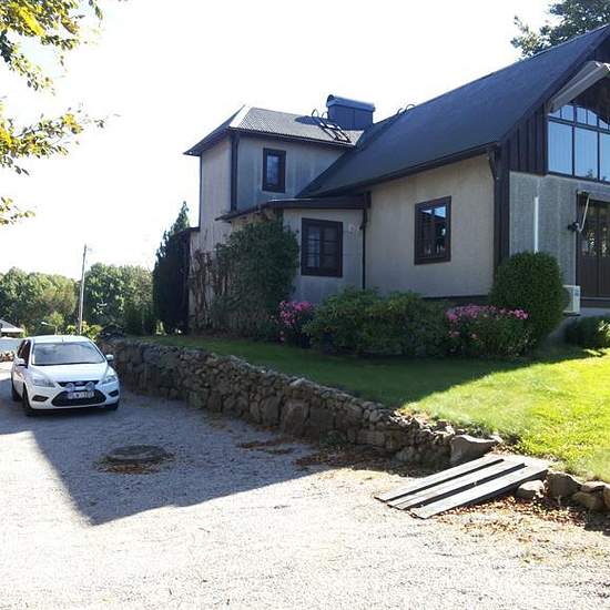 Huvudbyggnad om 160 m2 fördelat på två plan, Stort vardagsrum, glasveranda, matplats, kök samt toalett-dusch och klädvårdutrymme i bottenplan två sovrum, hall och garderobsutrymmen samt inglasad balkong på övre plan Oppenspis i vardagsrummet och kakelugn vid matplatsen Ekonomibyggnader-uthus (4 byggnader) 1) gästrum/gillestuga, mindre verkstad och förvaringsutrymmen samt “uteplats” 2) garage 3) brygghus med duschutrymme 4) oinredd större ekonomibyggnad Tomtmark och omgivning Tomten består av två fastigheter, Asarum 10:14 & 10:...