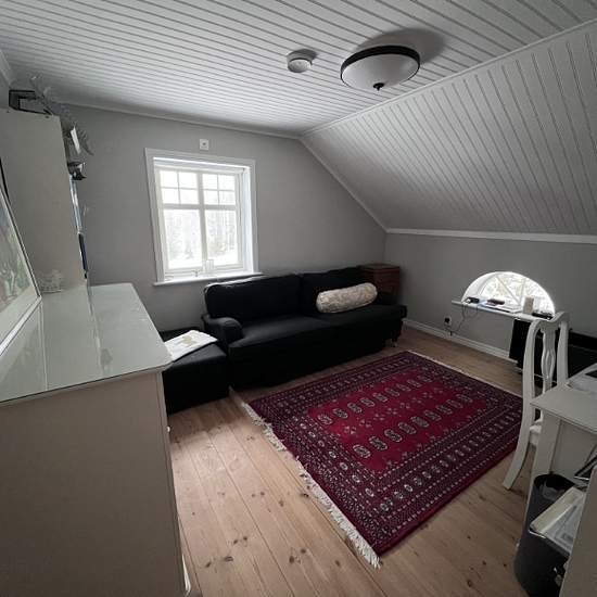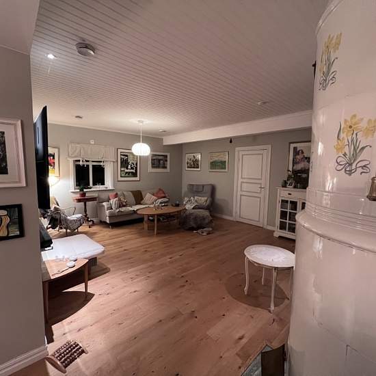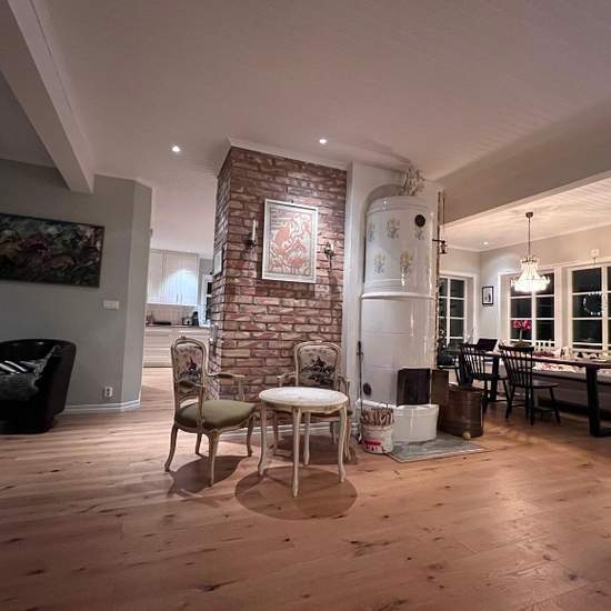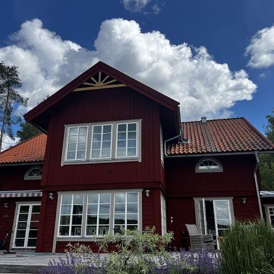 2-vånings arkitektritad villa på egen tom om ca 5.000 m2. Ligger högt med fantastisk utsikt över en dalgång där det finns en stor hästgård. Därför ser du alltid betande hästar samt träningsanläggningen där du på en ca 200 m2 stor altan kan se pågående träningar. Framför huset ligger även en pool (4x10 m) samt ett poolhus med vedeldad bastu. Huset har laddning för elbi, 12 kWh. Till huset hör även egen badplats med brygga och båt i sjö ca 800 m från huset. Även fiskerätt i sjön ingår. Där finns aborre, gädda samt kräftor.