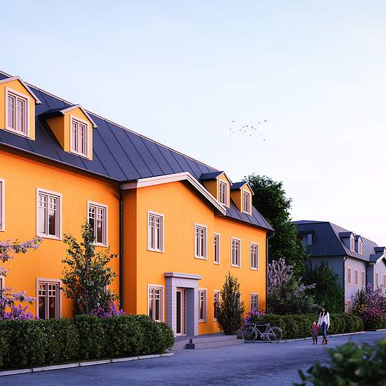 En ljus, modern bostad med balkong. De karakteristiska Patricier-fönstren med spröjs tillsammans med glasdörrarna ut till balkongen släpper in rikligt med ljus. På balkongen kan du njuta av omgivningen och lugnet. Den öppna planlösningen ger dig en luftig bostad som är anpassad för ditt sociala liv. Köket från Marbodal har gråa skåpluckor i kulören "moln" med moderna handtag som bryter av på ett snyggt sätt. Rostfria vitvaror från Cylinda och bänkskivan i laminat är snyggt grå. Badrummet är helkaklat med klinker från Bricmate och de större...