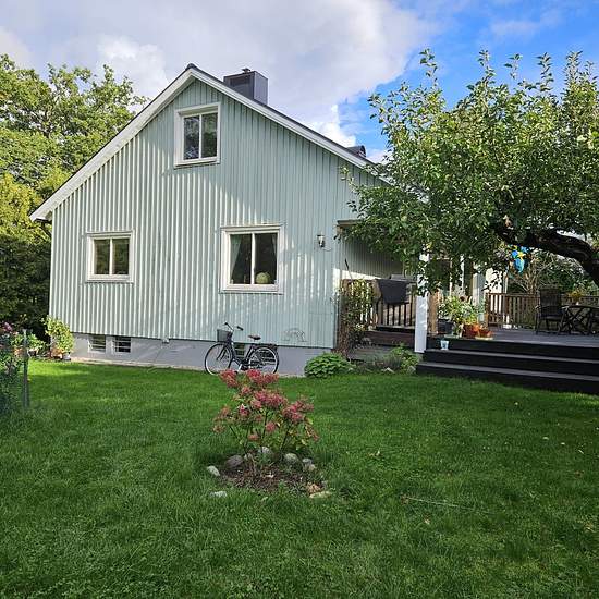 Uthyrs till korta eller långa perioder. Välkommen till denna rymliga och fräscha villa i Älvsjö, ett lugnt och trevligt område med bra kommunikationer – busshållsplatsen ligger precis utanför och på knappt 7 minuter promenerar du till Älvsjö pendeltågsstation. Villan är fördelad på tre våningar och erbjuder gott om plats för hela familjen. På entréplanet möts du av ett stort och ljust vardagsrum och ett rymligt köket, perfekt för umgänge och middagar. Härifrån når du också en rymlig altan som leder vidare ner till den gröna trädgården. H...