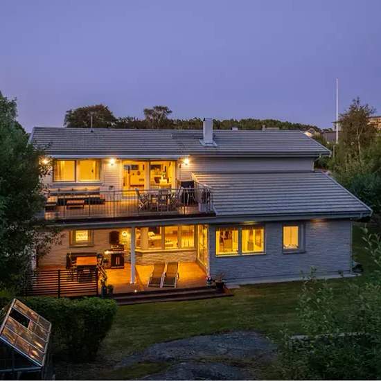 Beskrivning En stor villa i det fina området Näset med ett stenkast avstånd till havet och mycket insynsskyddat. Villan är nyligen total renoverad med moderna möbler och har en egen relaxavdelning med tillhörigheter.