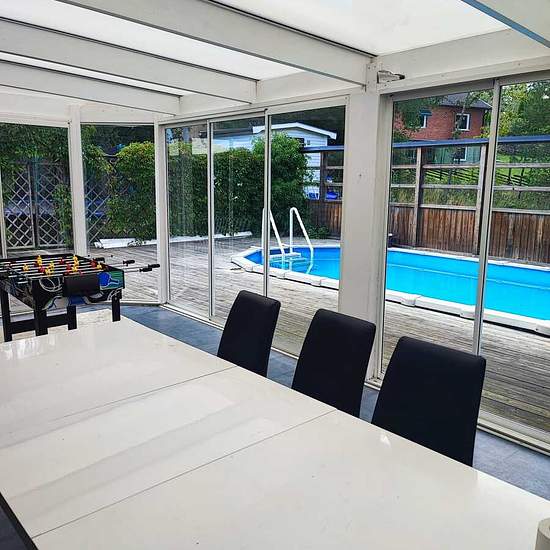 • Kallhyra • TYP: Tegelvilla i 2 plans i suterräng med Pool • ANTAL RUM: 7 rum varav 4-5 sovrum • BOAREA: 276 kvm • TOMTAREA: 1223 kvm • INTERNET: Fiber 1000/1000 • UPPVÄRMNING: Eldstäder och LVP i varje plan, golvvärme del av entrépl & kök, golvvärme i dusch samt elradiatorer i alla rum. • DRIFTKOSTNADER: 3146 kr/månad Allmänt: En väl omhändertagen och representativ 2 plans tegelvilla i souterräng, perfekt för den stora familjen/ egna företagaren med höga krav på utrymme. Fantastiska ytor, exklusivt Poggenpohlkök, med öppen planlösning,...