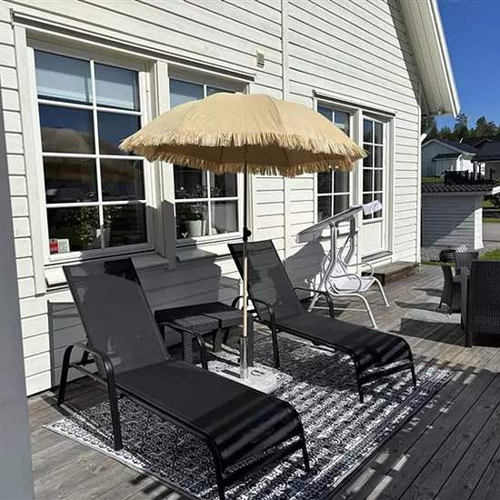 Beskrivning Nybyggt bostadsområde med närhet till Sinksundets badstrand, friluftsområde och Ormbergets skidbacke. Luleå centrum och Storhedens handelsområde når du inom 15 min med bil. Huset är på över 200 kvm indelad i fem sovrum, två vardagsrum samt stort kök med köksö samt matplats. Huset har två badrum. På övervägningen finns ett stort badrum med såväl toalett, dusch och badkar. På nedervåningen finns ett badrum med toalett och dusch. Mellan huset och garaget finns ytterligare en hall samt bastu och dusch. På sommaren finns två stora a...