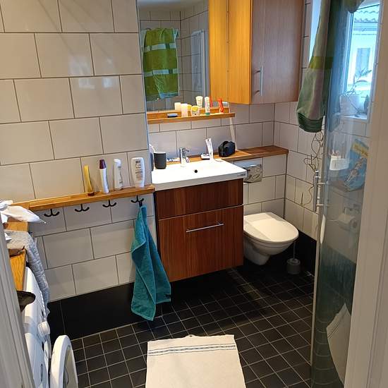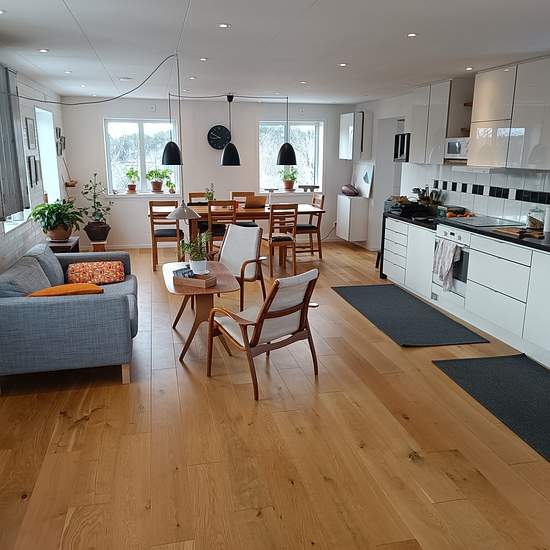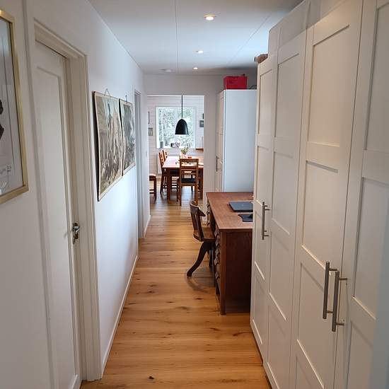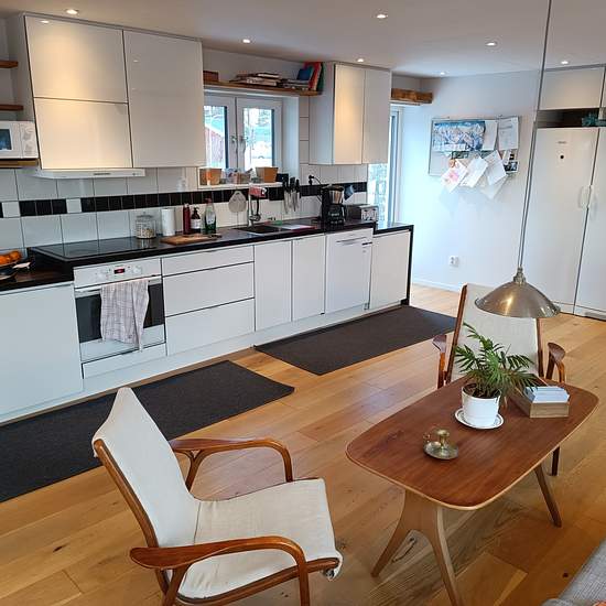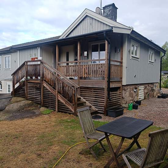 Fint nyrenoverat hus på 105m2 beläget i Saltsjö-Boo i Nacka hyrs ut medan vi är på resa. Huset ligger ljust på en höjd, nära till affär och bussar till stan. Huset har en stor altan i västerläge och en veranda vid entrén för morgonsol. Husets utrymmen är disponerade på 7 st rum, varav 4 st sovrum. Kök, allrum och matrum ingår i gemensam öppen planlösning. Två platser finns för kontorsarbete. TV rum/allrum ligger i husets ena ände och en stor hall finns med gott om plats för kläder. Badrummet har tvättmaskin och en arbetsbänk. Parkeringsplats...