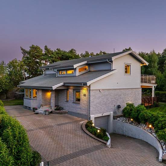 Möjligt att hyra depositionsfritt genom Samtrygg. Månadskostnad: 40250 kr. ________________________________________________________________ Snabbast bokar du visning genom att följa denna länk till Samtrygg: Här hittar du även fler bilder och mer info. ________________________________________________________________ Husets totala area är på 216 kvm boarea+101 kvm biarea. Det finns totalt 7 rum som består av 5 sovrum, vardagsrum sam ett tv-rum på övervåningen. En spaavdelning finner man i källarvåningen på 57 kvm med bubbelpool, torr b...