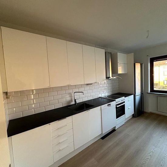 Möjlighet att hyra ett helt radhus på totalt 8 rum, 240 kvm bestående av 4 separata lägenheter med egna kök, badrum. Tvätt/torkmaskin, kök. Tvättstuga. Fri parkering på gatan samt även tillgång att ordna en på gården. Vatten, internet ingår i hyra, exklusive rörlig elavgift. Närhet till livsmedelsbutiker (ICA med andra), restauranger, skola/förskola, vårdcentral, förbindelser med kollektivtrafik. Smidigt till inre ringvägen. Serviceavgift för hyresgäst: 2079