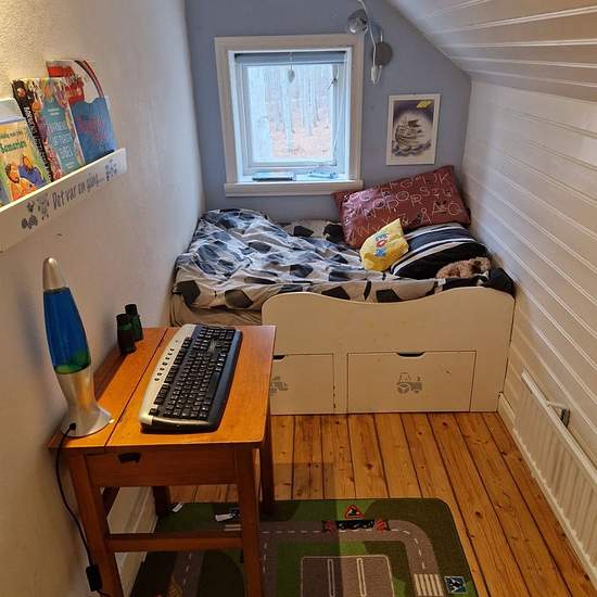 Fristående hus med tomt . Bostaden är i två plan. Nv : Kök , toa, grov-entre` med tvättmaskin , badrum , 3 rum + en utbyggnad som är byggd hösten 2023 , med en stor hall ca 12 m3 och ett allrum på ca 35 m3 . På öv är det en toa, två rum , garderob och 3 inredda kattvindar . Många delar av huset är renoverat , i köket är renovering påbörjad men inte klar. Värme , vatten , sophämtning ingår i hyran. Hushållsel inkl uppvärmning av varmvatten tillkommer. Buss 807 med täta förbindelser med Örebro går ca 200 m från bostaden. 15 km till Univers...