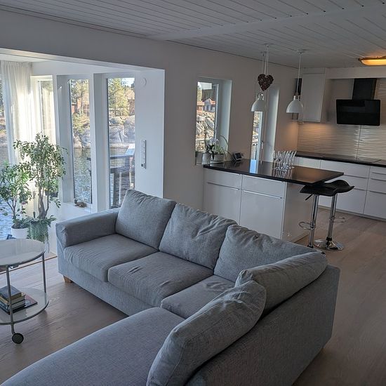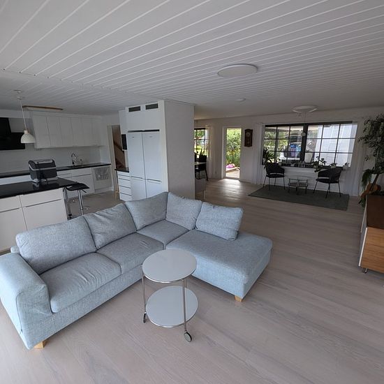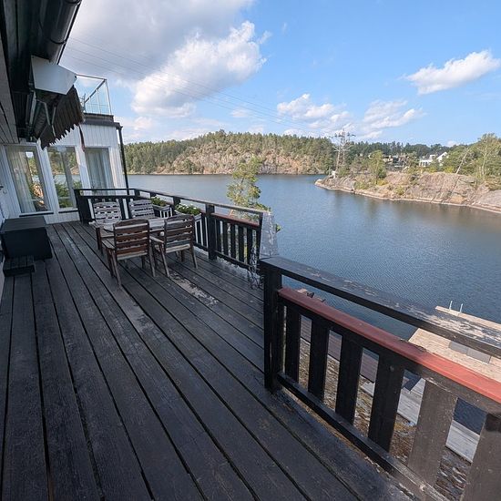 Villa i lugnt område med sjötomt, fiskevatten och egen brygga vid Drevviken. Nära till bussar mot Stockholm och Trollbäcken centrum. Med bil når man Stockholm på 15 min och med direktbussarna till innerstaden tar det ca 25 min. Huset ligger vid återvändsgata, så det är ingen trafik utanför huset. Huset ligger även i direkt anslutning till en mindre skog där man kan plocka bär och svamp. Från stor egen flytbrygga går bada, åka skridskor, fiska kräftor och paddla kajak. Kajak och SUP ingår i hyran. Huset har en öppen planlösning på nedre vån...