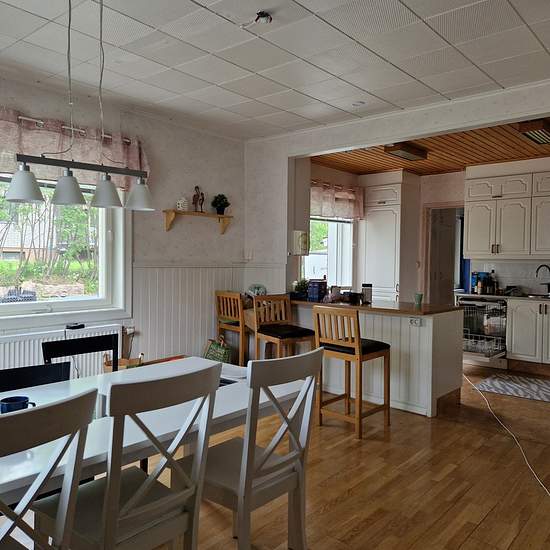 Boende uthyres i Kiruna Fastigheten ligger centralt i Kiruna, ett stenkast från ica-kvantum, Cirkel-K, Burger king mm. I Huset finns: 2st fullt utrustade kök. 10st sovrum med sängbord och skrivbord. 3st duschar 1st bastu med relax 3st toaletter 1st förråd 1st tvättrum med tvättmaskin, Torktumlare och torklinor. Huset har stora ytor som snabbt kan ändras om utifrån era behov tex Kontor konferens, omklädningsrum. I nuvarande utförande är huset bra lämpat för kontor eller boende. Gårdsplanen har gott om plats för flertalet bilar på båda si...