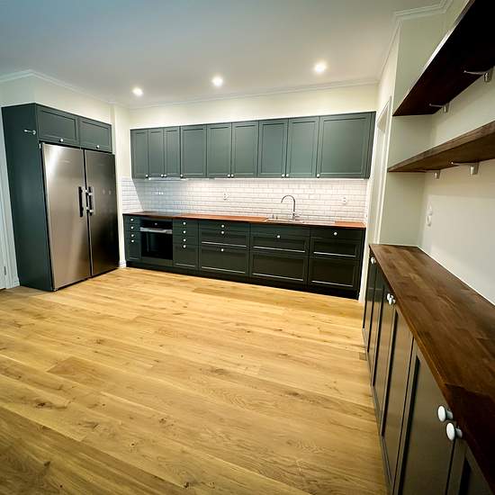 Modernt boende på Össjö gård i nordvästra Skåne för långtids- eller korttidsuthyrning. Intill Össjö gårds 1700-tals byggnader hyrs nu ut ett nyrenoverat boende i gårdens villa från 1945. Husets planlösning erbjuder ett stort kök att umgås i, en matsal med kakelugn och anslutande ljust sällskapsrum, tre badrum, och sex rum som kan användas till sovrum eller kontor. Boytan fördelas på två våningar med sammanlagt 234 m². Huset har renoverats till toppskick med nytt exklusivt kök, nylagda ek- och björkgolv med trä från gårdens egen skog, nya v...