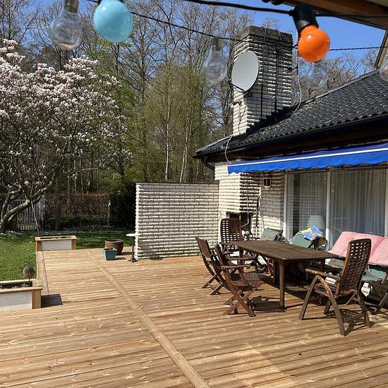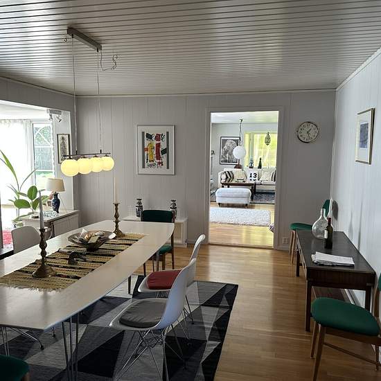 Big house in a secluded area in Skanör Skanör and Falsterbo have long been a holiday idyll with an old town centre, lively marina, historic golf courses and kilometres of white beaches. Perfect location with short distance to several sandy beaches and top-class golf courses. Sheltered from the wind by the park and just 2 minutes from grocery shop and bakery. From here you can easily get to Copenhagen by bus/train - the nearest stop is 150 m from the house! The house is from 1969 and is 310 sq m and has a retro feel with large areas for soci...