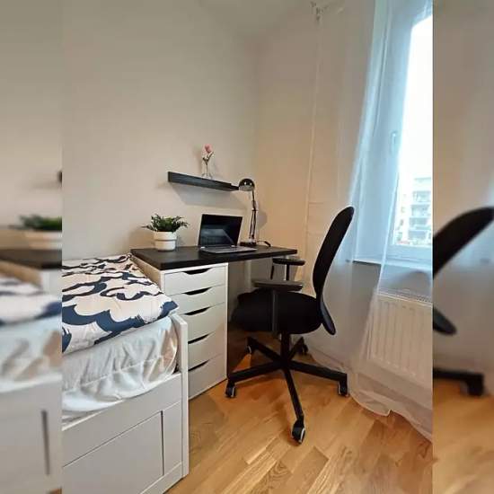 This new flatshare room in Stockholm for rent is located on the second floor with windows looking into the beautiful garden. The new flatshare room in Stockholm has a bed (which folds out into a double bed), work table and extra spacious closet. The new flatshare room in Stockholm size is about nine square meters and it is “ready-to-move-in”. It’s fully furnished and with bedding and pillows. Also modern kitchen has built-in appliances (microvave, oven, dishwasher, kettle, induction hob atd.) also laundry with washing machine and dryer. In a...
