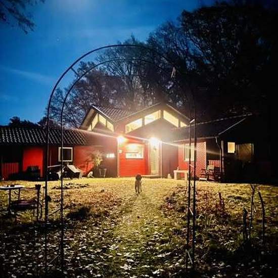 Stuga utanför Simrishamn uthyres. Ligger enskilt och lugnt men ändå endast några enstaka minuters promenad till hav, strand, fiskeby, konstutställningar och golfbanor. Två sovrum, tv och WiFi, fullt utrustat kök, badrum med toalett och dusch. Mycket lekyta och flera sittplatser i trädgården. För max fem personer (varav som mest fyra vuxna). Husdjur är välkomna. Tomten är till stor del inhängnad. En granne finns, men på hyfsat avstånd. Omgivning består främst av skog, äppelodlingar, promenadstigar mm. Skåneleden löper förbi en min...