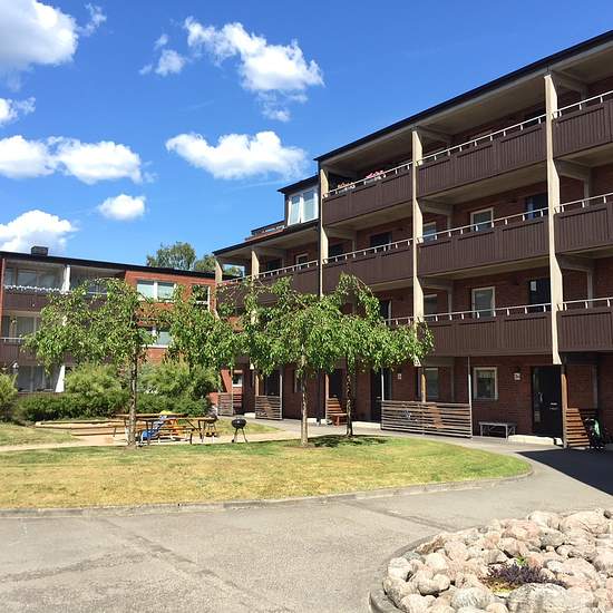 In this neighborhood you live in pleasant three- and five-storey residential buildings along the Säveån and within easy walking distance of central Alingsås, where there are good transport connections. Electricity, heating and water are included in the rent.