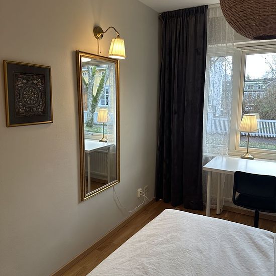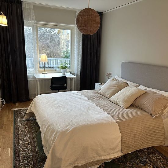 Hi! I don’t need such a large apartment, so from January 1 I’m renting out a room in my centrally located four-room apartment which is right next to Alingsås train station (about a 5-minute walk). The express train from Alingsås station takes you to Gothenburg in half an hour and to Stockholm in under three hours. Private areas besides the room (not shared with me): Hall Walk-in closet Private toilet and shower Shared areas (shared with me): Kitchen Everything is included in the rent (Wi‑Fi, normal consumption of electricity and water) A...
