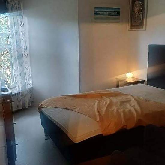 Room of approx. 14 m² with a private toilet for rent, located separately in a 4-room apartment of 100 m². 3 minutes to the commuter train and buses, view over a park, access to a balcony.