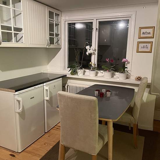 Möjligt att hyra depositionsfritt genom Samtrygg. Månadskostnad: 8165 kr. ________________________________________________________________ Snabbast bokar du visning genom att följa denna länk till Samtrygg: Här hittar du även fler bilder och mer info. ________________________________________________________________ Egen övervåning i villan.. Gemensam hall, där dörr till övervåning/uthyrningsdel finns. Stort möblerat rum med fönster i söderläge. I trapphallen finns pentry med kyl/frys, kokplatta, mikro, vattenkokare, kaffebryggare, ...