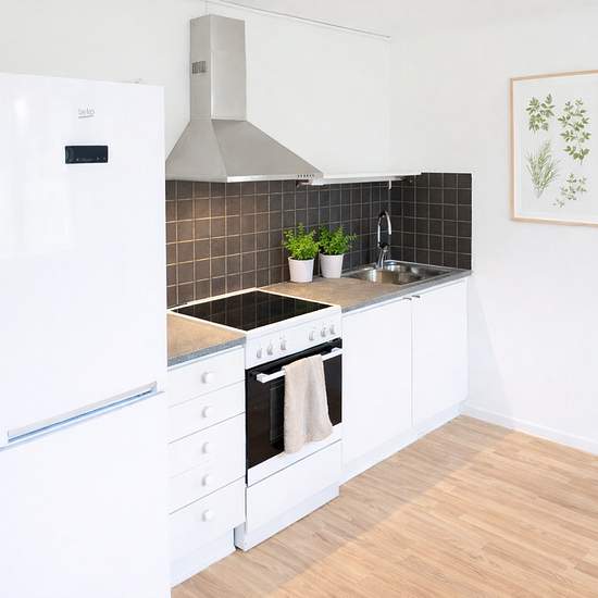 Welcome to a bright and well-planned 1.5-room apartment with a modern and pleasant feel. The apartment offers an open and inviting layout between the kitchen and living room, with plenty of space for both a dining table and a seating area. The large windows provide generous natural light and create an airy, harmonious atmosphere. The kitchen is sleek and functional with a fridge and freezer, stove with oven, range hood, as well as good work surfaces and storage. The light cabinet doors combined with the dark tiles create a modern and fresh...