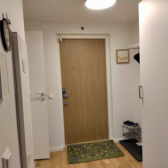 Lägenheten är belägen på våning 4 i ett nybyggt lägenhetshus med härligt ljusinsläpp och utsikt över en dunge. Bostaden är nybygd och väl ljudisolerad med ekparkett och fullt utrustat modernt kök. Badrummet är stort med tvättmaskin/torktumlare och dusch. Lägenheten hyrs ut möblerad. Wifi, värme och el ingår. Den är optimal för en person, men det finns två sängar som är uppstaplade på varandra för mer flexibilitet. Det finns även möjlighet att hyra en modern gemensamhetslokal i bottenvåningen för större fester. Matbutik och kommunikationer ...