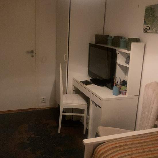I am renting out 1 room in a 4-room apartment of a total 97 sqm (whole apartment). The room is about 10 sqm and is furnished with a bed and bedside table, desk, chair, wardrobe, rug, mirror, TV. The area is quiet with lots of nature outside and also close to Lake Surte. It takes 4 minutes to the bus stop. Access to a kitchen with appliances, living room, bathroom, patio, private toilet, internet available. The apartment is very fresh/clean and is on the ground floor. Afternoon/evening sun. Access to a barbecue area. Perfect for students. Inc...