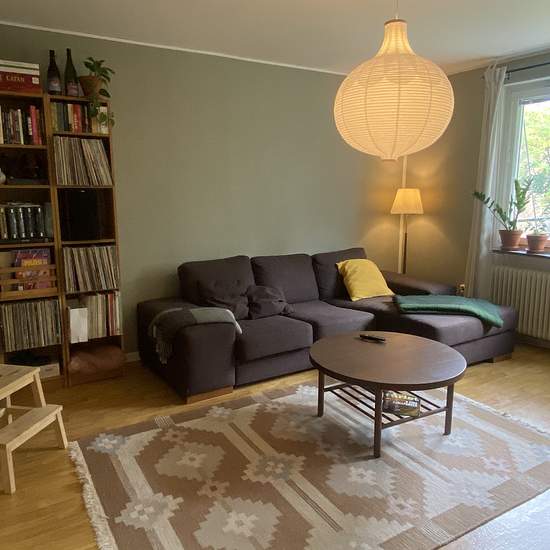 Rummet (ca 13 kvm) har mycket ljusinsläpp och två inbyggda garderober/linneskåp. Rummet är möblerat med en 120-säng, matta, ett mindre skrivbor och en IKEA IVAR-hylla. Hyran inkluderar bredband, gas och el. Lägenheten är totalt 60 kvm och delade utrymmen är hall, kök (utan diskmaskin) och badrum. Lägenheten hyrs ut med preliminärt slutdatum 30 januari 2026 med möjlighet till förlängning, annars gäller en månads uppsägningstid från båda sidor. Lägenheten ligger på andra våningen utan hiss, nära till både Årsta Holmars Naturreservat och Års...