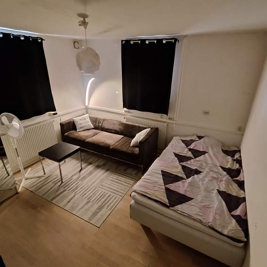 It's a one-room apartment near Årstaberg and Gullmarsplan, in a nice, quiet area. The contract will be simple — the plan is a 3-month trial period with the right person, then possibilities for a permanent contract. 1 month notice period = 2 months' rent to be paid at move-in. Preferably rented to: student or single occupant; company with a small/simple business — make an offer. Heating, Internet and electricity usage are included. Different combinations of furniture can be arranged, including desks, chairs, computers, etc. No parking a...