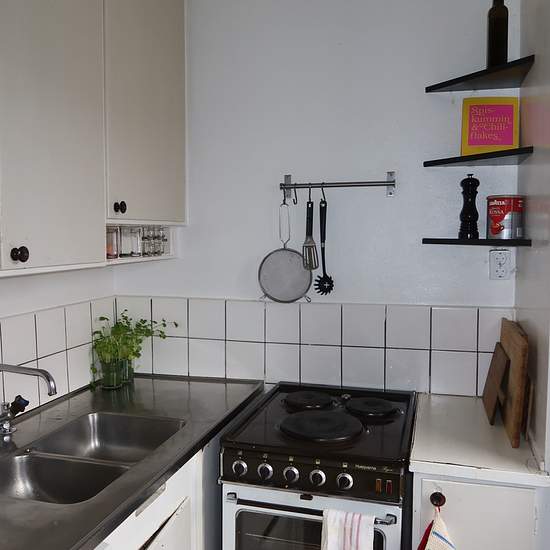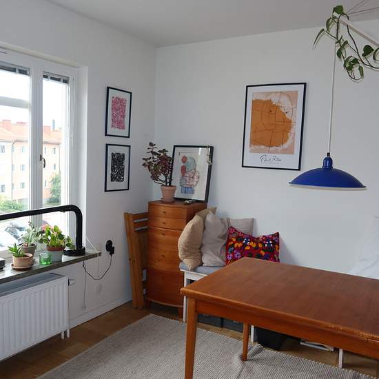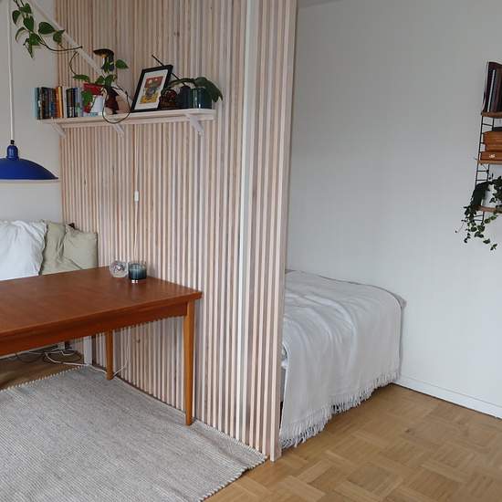 A cozy, bright and well-planned studio apartment within walking distance of both the subway and the forest, as well as rocky bathing spots. The housing association also has several barbecue areas and hobby rooms. Service fee for tenant: 595