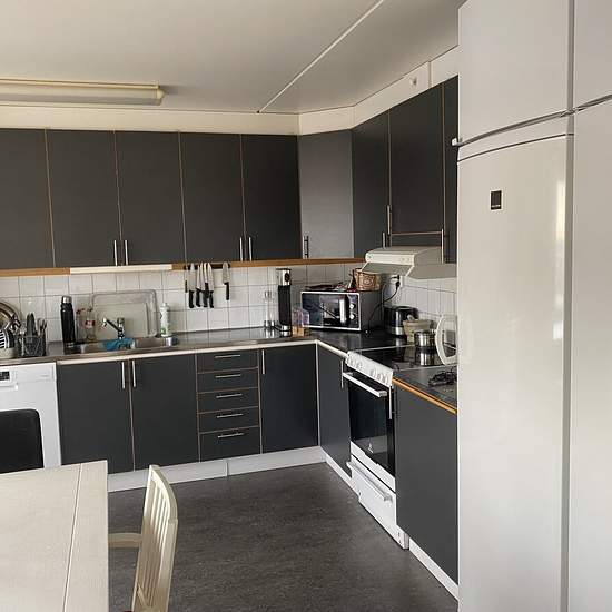 The room is 7 m². It is bright and offers full privacy with a sweeping view for miles from the 10th floor of a duplex apartment. The toilet with shower and the kitchen with access to a balcony are shared. There is an elevator and a laundry room in the building. Vintrosagatan 14 is located in Hagsätra Centrum with shops and eateries as well as good transport links by buses (which, among other things, go to the commuter rail at Älvsjö) and the subway. Right next to it are pleasant walking areas in a nature reserve and the Älvsjö exhibition cen...
